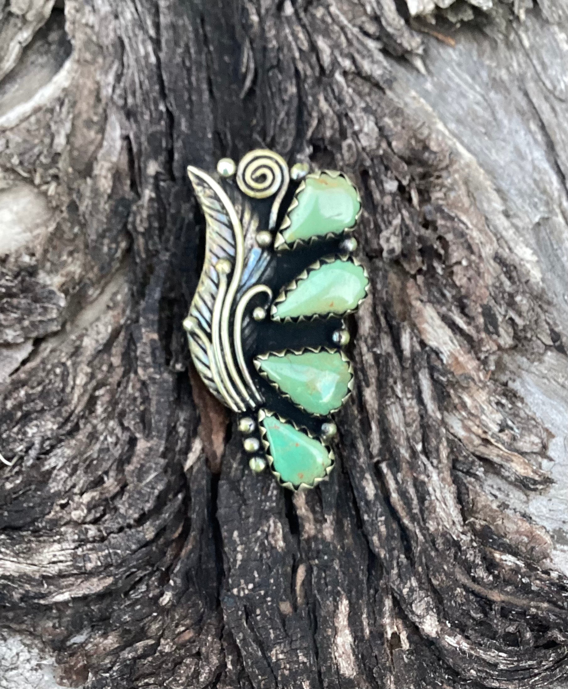 Four green stones balance the Tibetan Silver scrolling. As large as it looks it is extremely comfortable to wear.