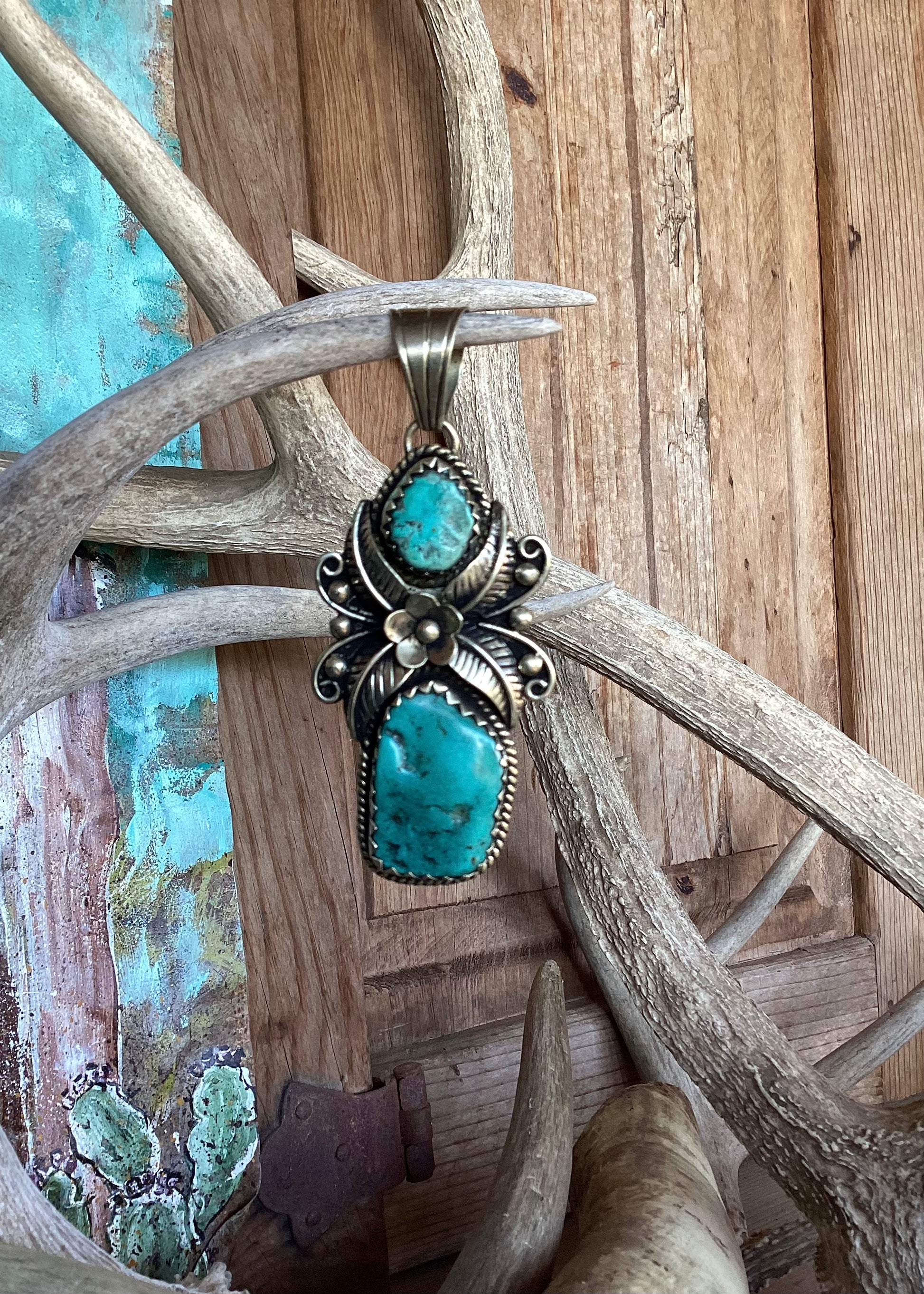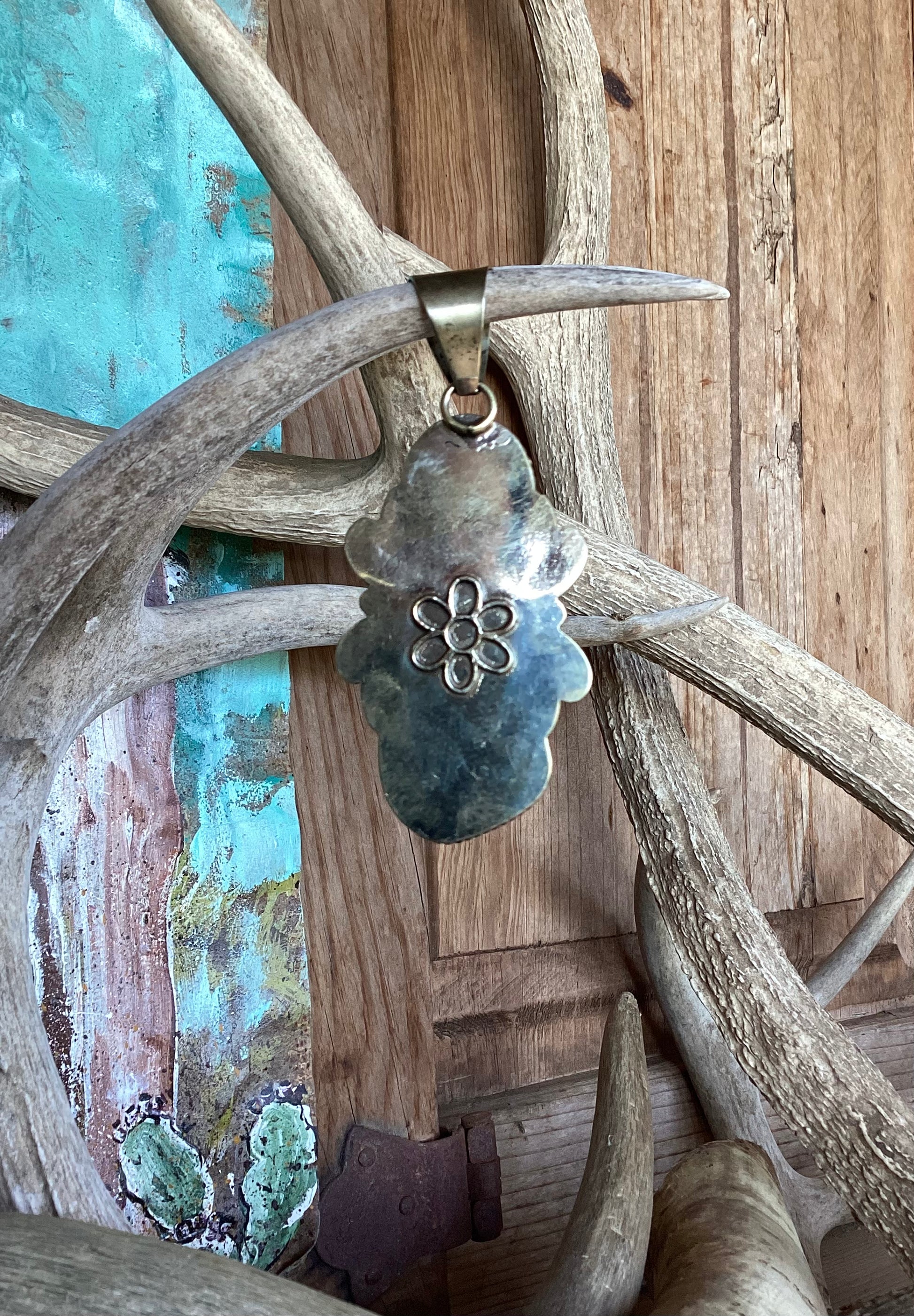 The pendant measures 4” in. long including the bale. Width 1.5” in.