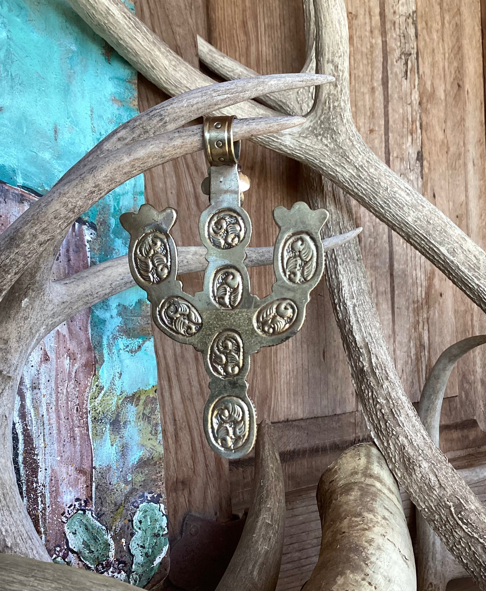 The pendant measures 4” in. long including the bale. Width 2.5” in.