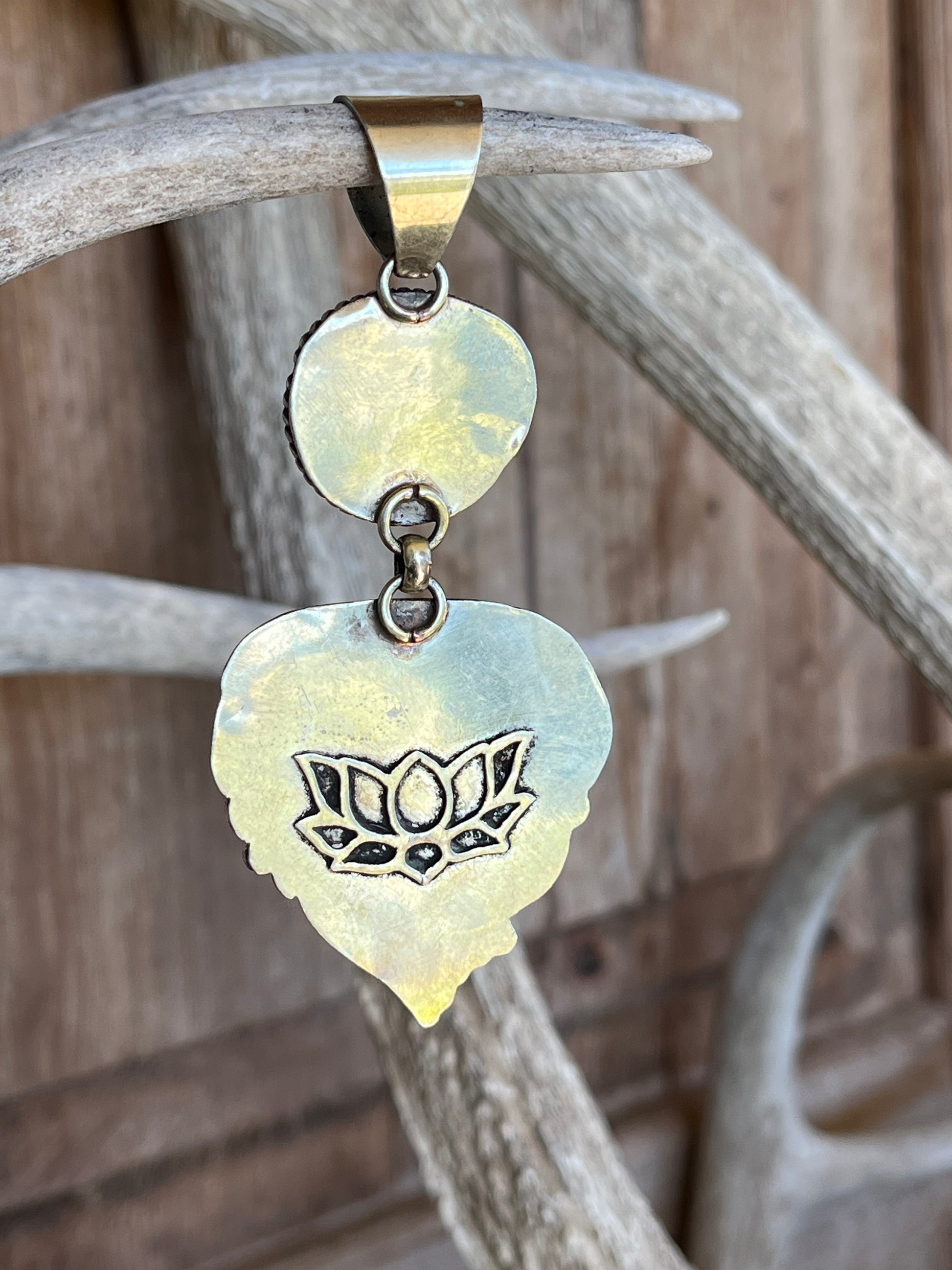 The pendant measures 3” in. long including the bale. Width 1.5” in.